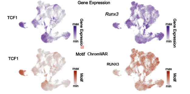 • By comparing motif activity across different cell types, one can identify transcription factors that are specific to each cell type.