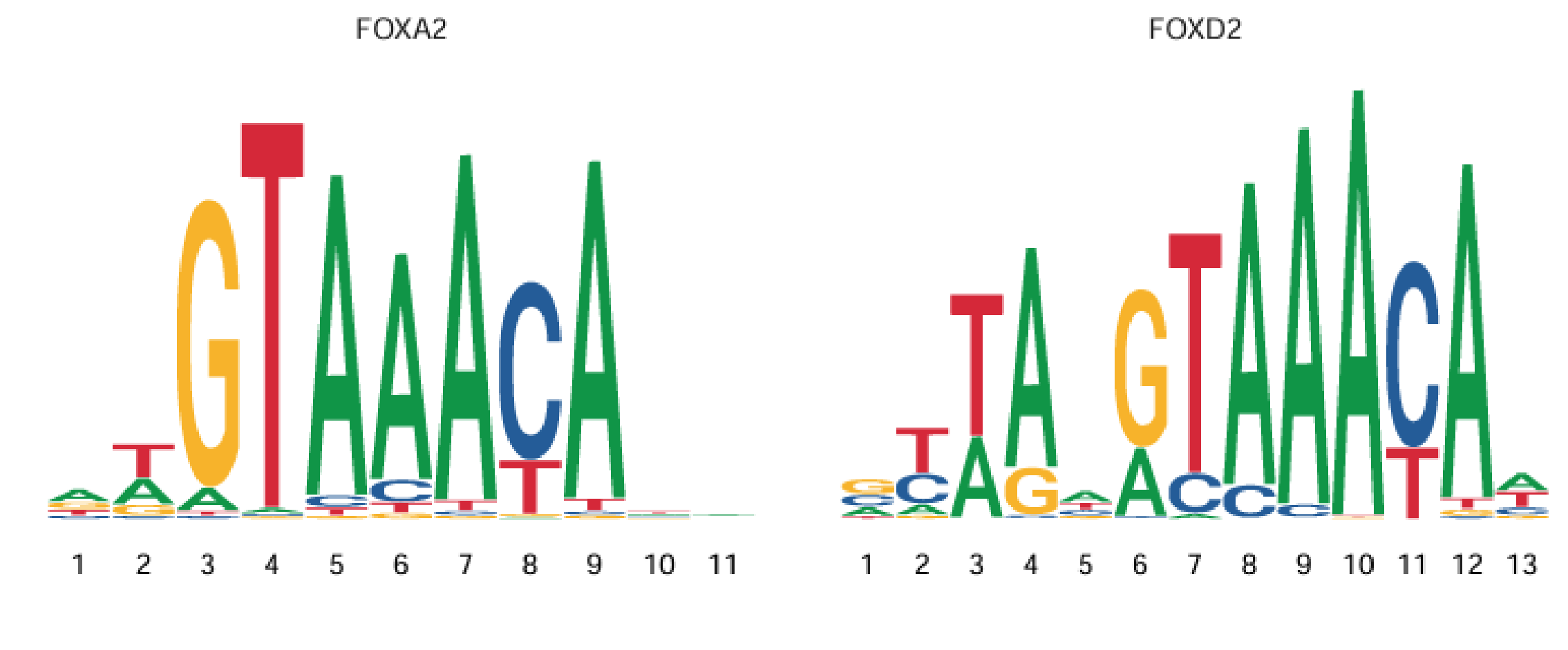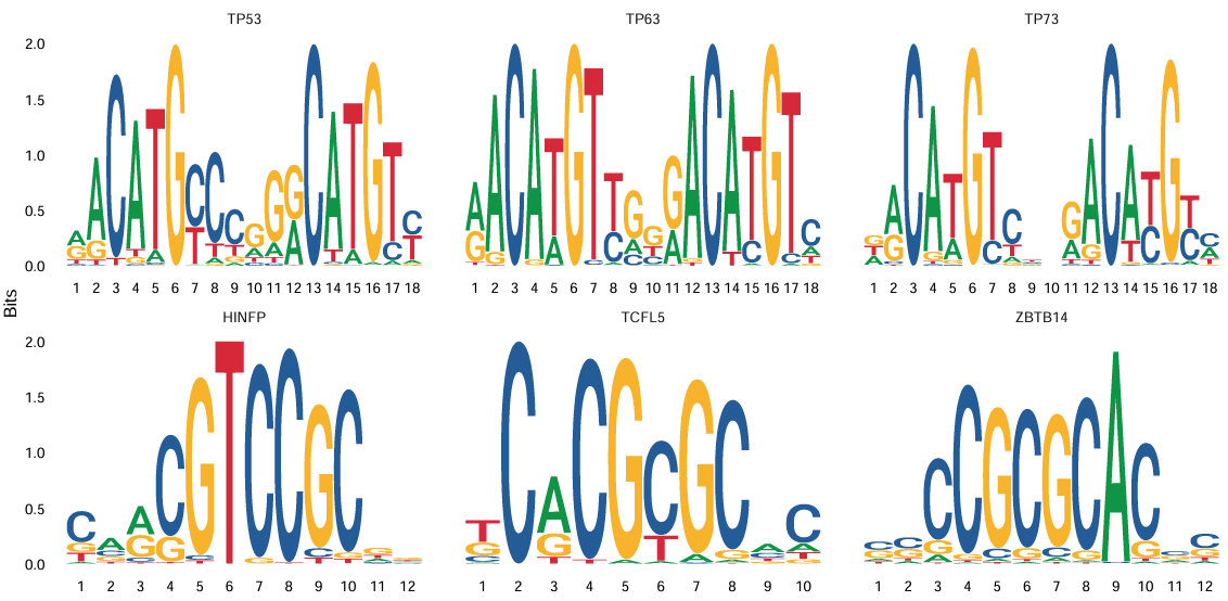 Transcription factors must bind to open DNA regions (peaks) to exert regulatory effects, and each transcription factor has preferred binding sequences (for example, SP1 prefers GC-rich sequences). These sequence patterns are known as motifs. Thus, a motif can be understood as a DNA sequence pattern recognized by a transcription factor's binding site, typically consisting of 6-20 base pairs, as illustrated below: