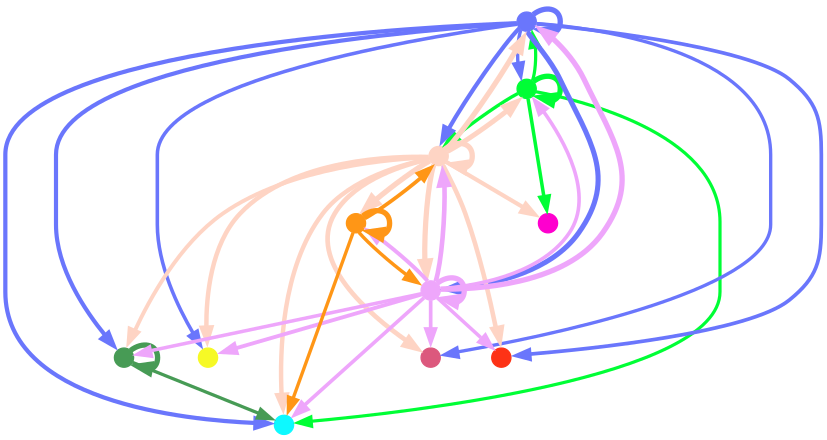 Cell communication network plot shows cell type interactions. Each color represents a cell type; lines pointing from a cell type to itself or others represent interactions.Result Files