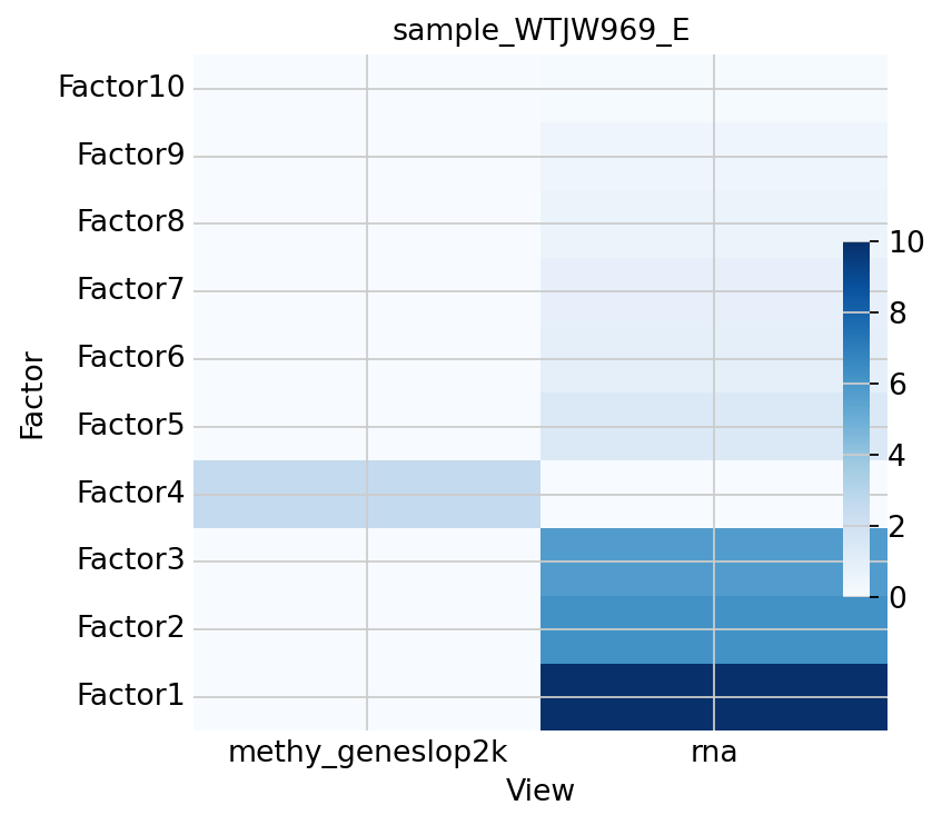 - Color Intensity: R2 value (Variance Explained), darker color indicates greater contribution of the factor to that modality.