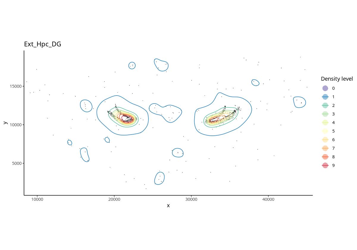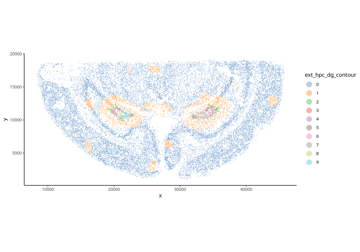 spe <- getContour(spe, coi = "Ext_Hpc_DG", equal.cell = TRUE, id = "Sub_CellType")spedim: 32285 32758