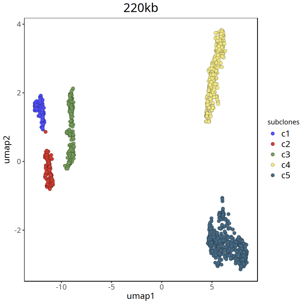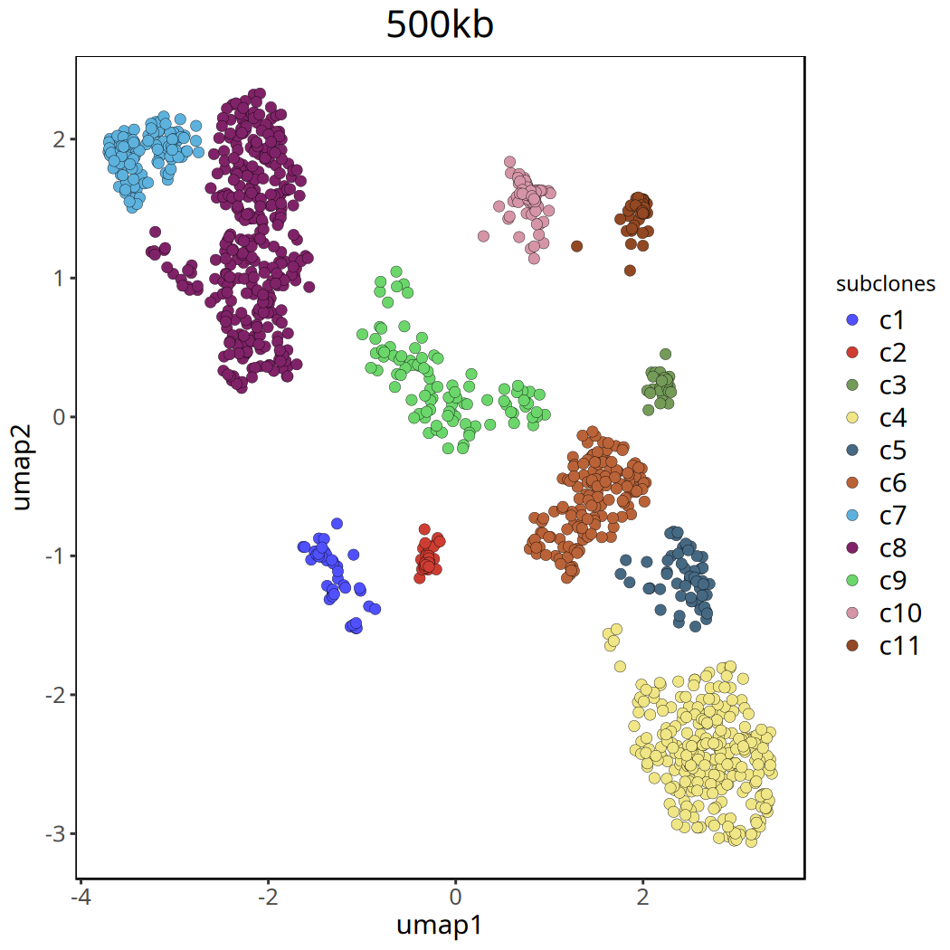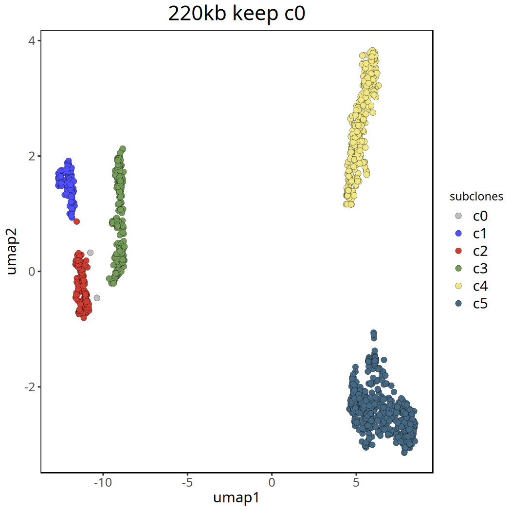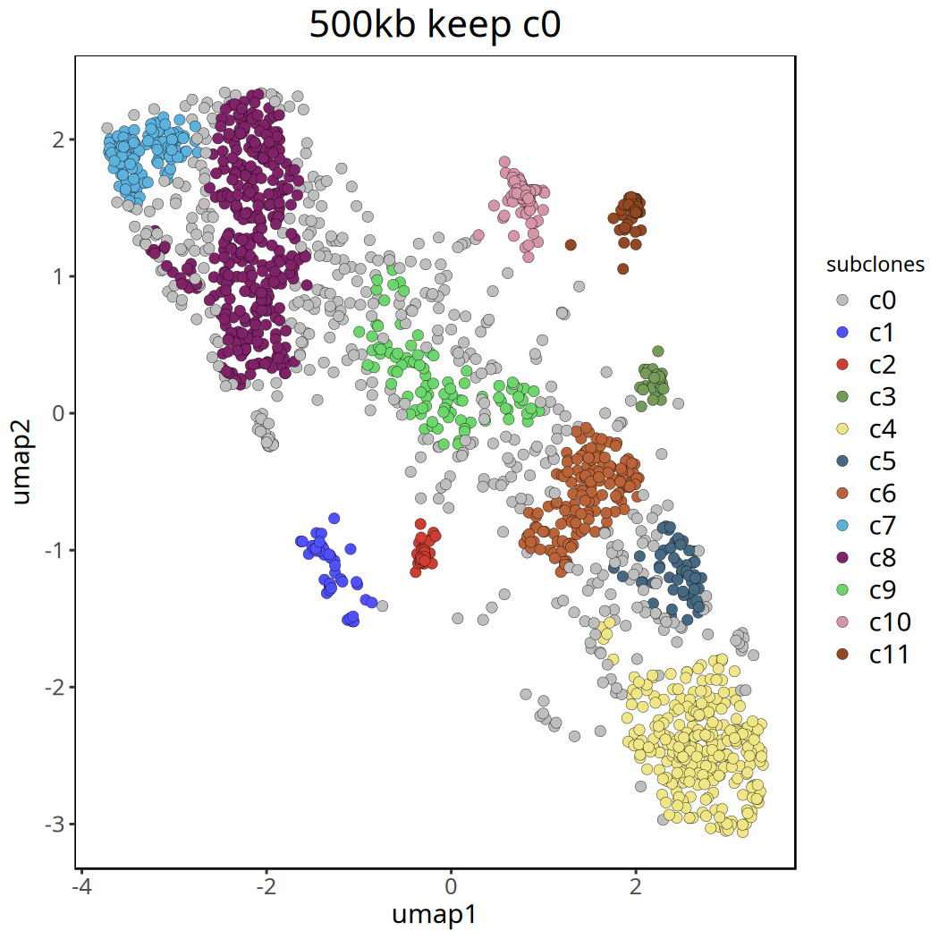 ggsave(file.path(outdir, paste0('plotUmap',samplename,'_500kb','_remove_c0.pdf')), pic, width = 7, height = 5)Coloring by: subclones.