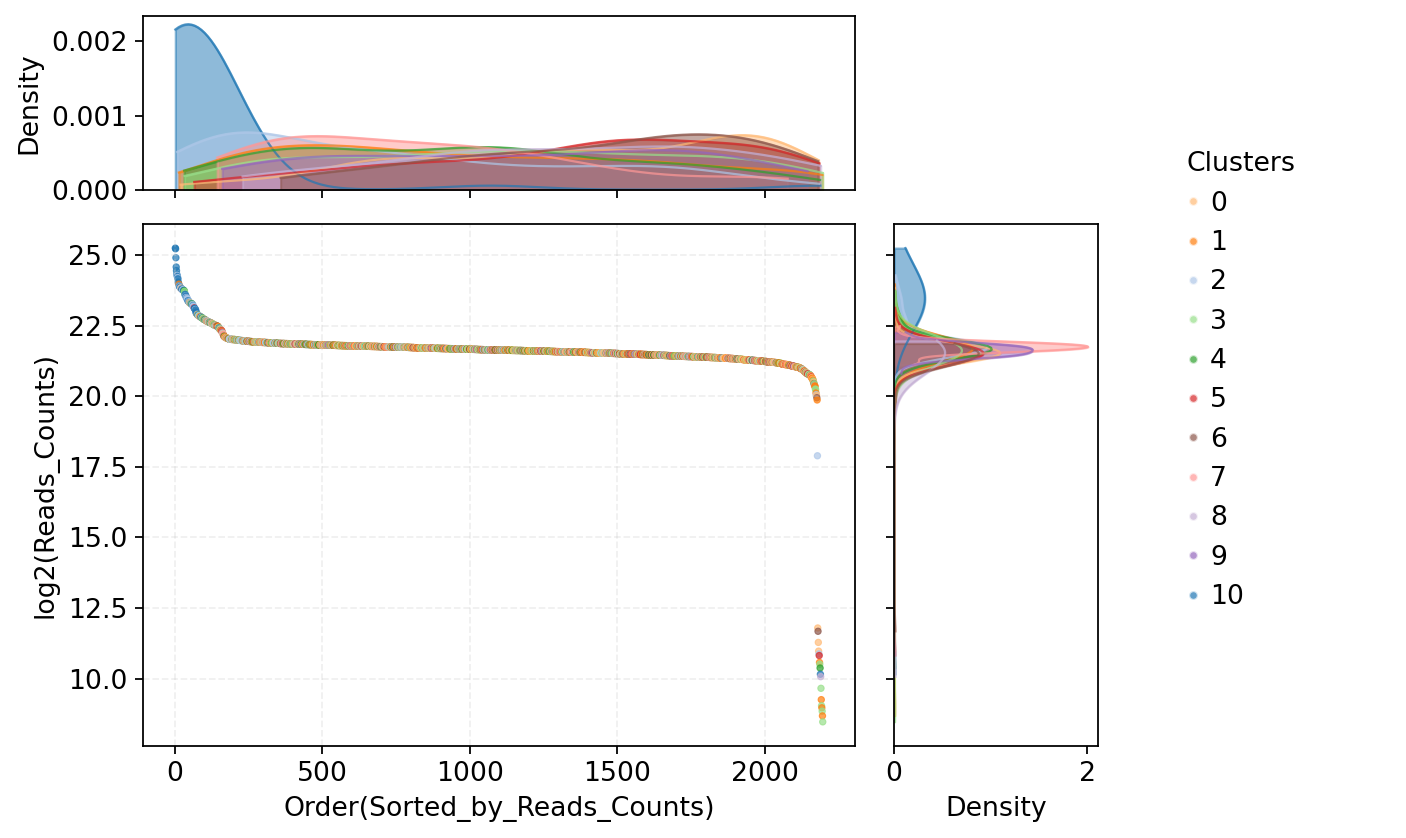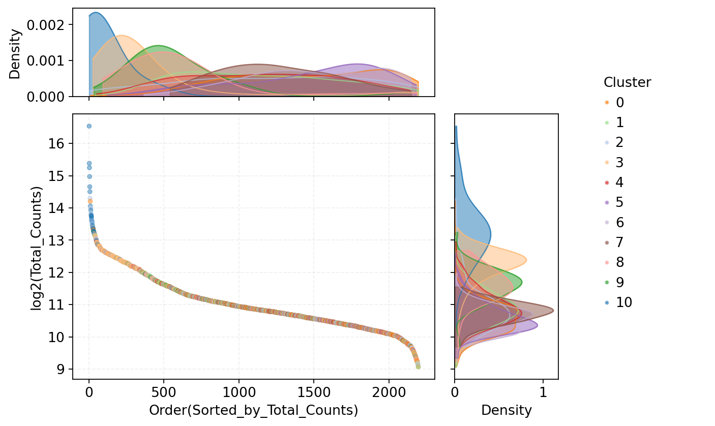 cluster 9) co-express marker genes from different cell types, that cluster is defined as a potential RNA doublet cluster.Methylation Reads Count Determination: Since doublets contain DNA from two cells, their methylation sequencing depth (Reads count) is usually significantly higher than single cells, often concentrating in the high Reads count range in the distribution.