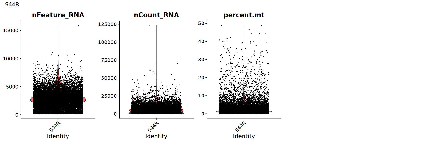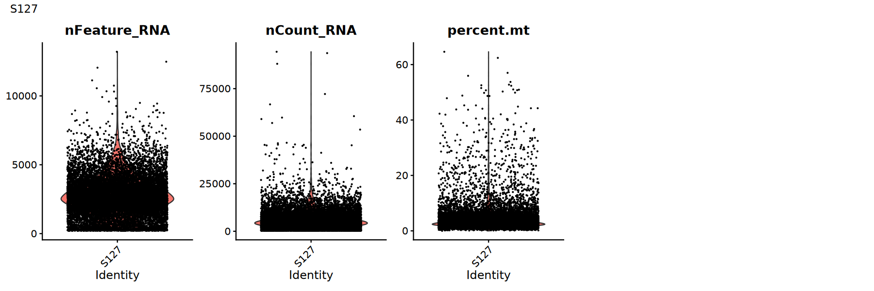 Use violin plots to view distribution/outliers of QC metrics to determine appropriate thresholds: