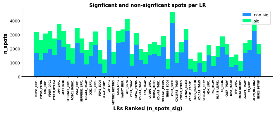 - Column 2 n_spots_sig: Number of cells/spots with significant LR interactions after corrected pval filtering