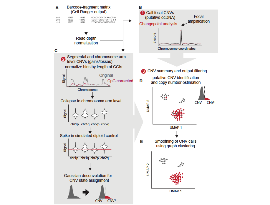 CNV is an important driver of the occurrence and progression of various diseases such as cancer. Traditional CNV analysis is primarily based on whole-genome sequencing (WGS) or whole-exome sequencing (WES), which can only provide population-average information. Single-cell CNV analysis infers the copy number state of each cell at single-cell resolution, enabling the revelation of genomic differences and heterogeneity among different cells within tissues.