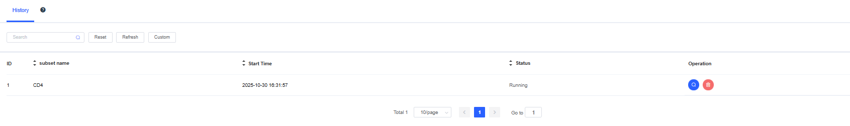 In the Subset module, you can extract and store cell populations of interest using custom rules (identical to the Add Tag rule in the Visualisation). The interface is divided into two sections: Subset and History.