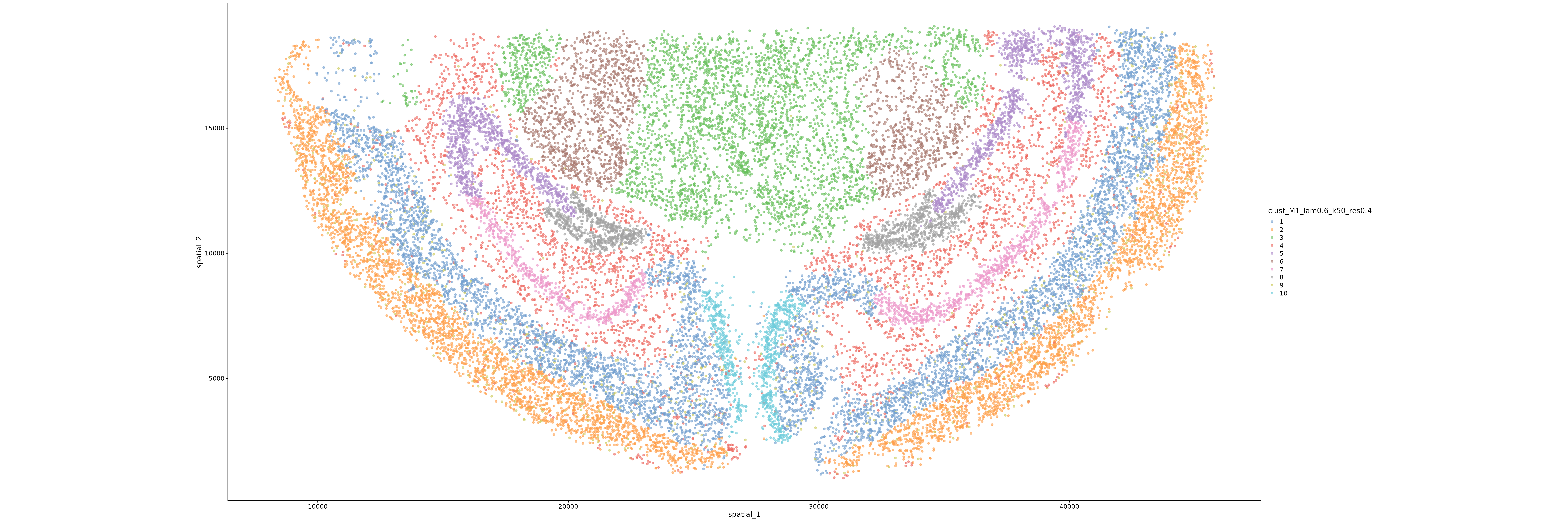 *_clust_M1_lam*_k50_res*_spatial_cluster_plot.png/pdf | Spatial clustering distribution maps under different λ and resolutions, showing the clustering results of cells in space | PNG/PDF |
