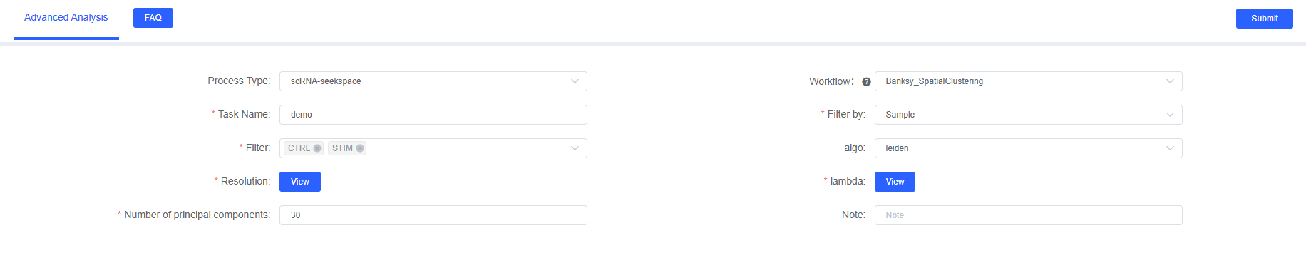- Enter Analysis Module: Navigate to the "Advanced Analysis" module on SeekSoul™ Online and select "Banksy_SpatialClustering".