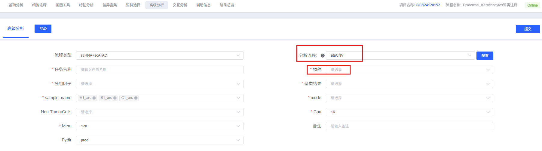 - Enter Analysis Module: Navigate to the "Advanced Analysis" module on the cloud platform and select "AtaCNV".