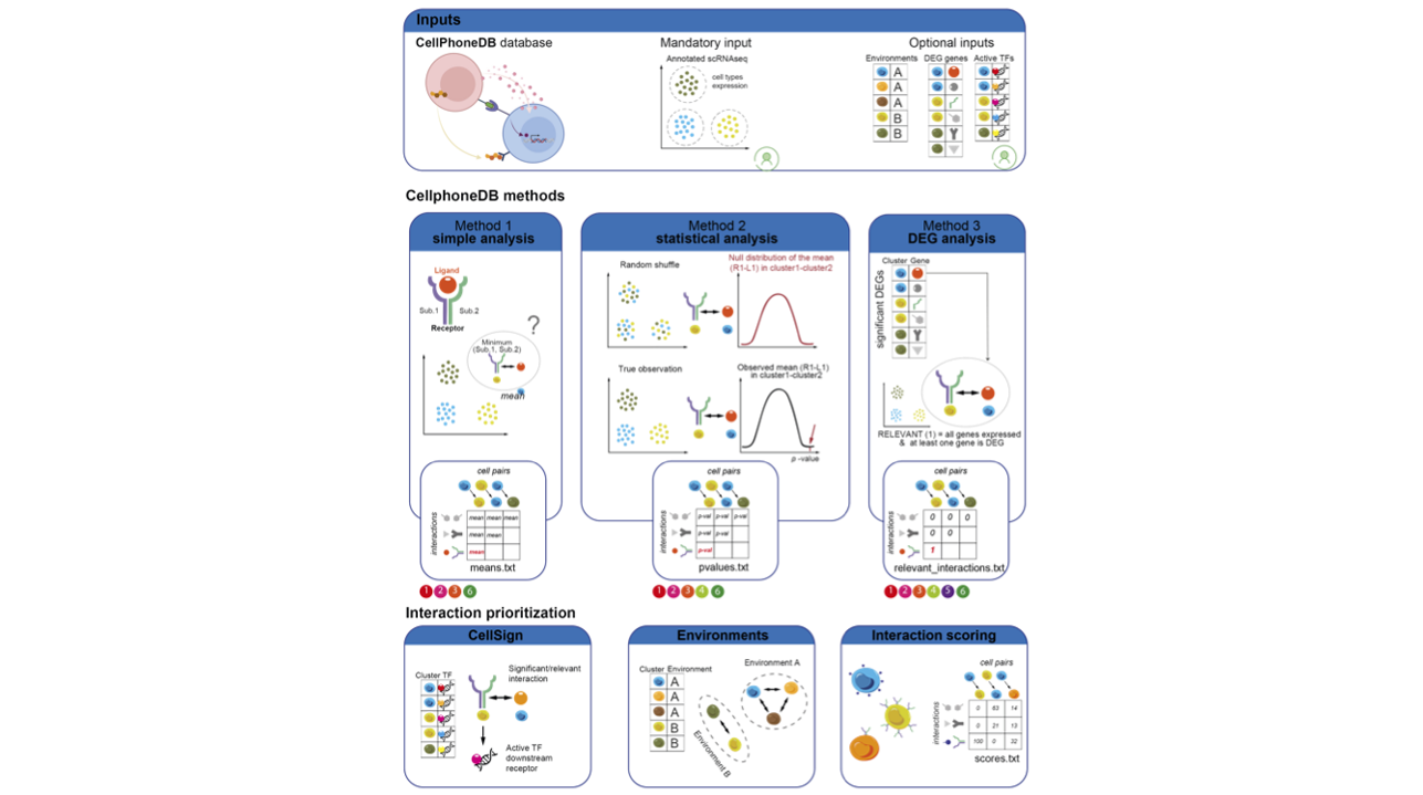 1. Efremova M., Vento-Tormo M., Teichmann S.A., Vento-Tormo R. CellPhoneDB: inferring cell-cell communication from combined expression of multi-subunit ligand-receptor complexes. Nature Protocols 15, 1484–1506 (2020). doi: 10.1038/s41596-020-0292-x.