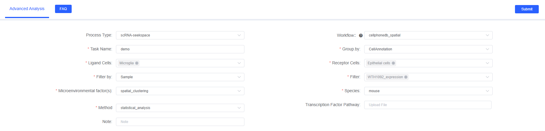 On SeekSoul™ Online, the CellPhoneDB_spatial analysis process is designed to be intuitive and user-friendly. You don't need to write code; you can complete the analysis through the parameter configuration interface.